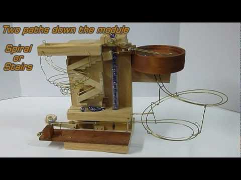Hieruit zou ik de grote ronde lift omgekeerd willen gebruiken zodat de knikkers onder hun eigen gewicht naar beneden vallen en eventueel andere knikkers naar boven trekken. Of ik zou het systeem onderaan dat de knikkers uitkapt kunnen laten resten door een andere knikker